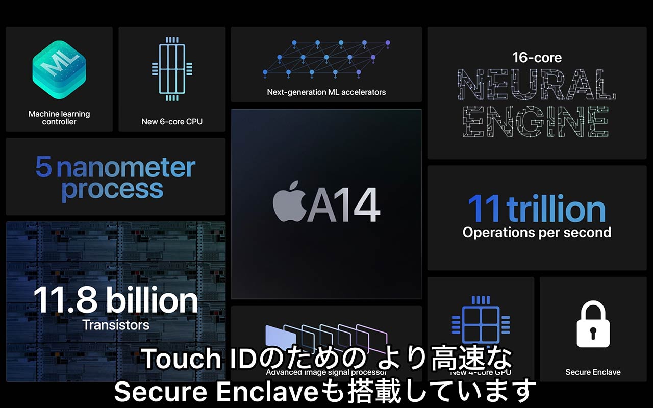 A14 Bionicが搭載するトランジスタは118億個。その前の世代のA13 Bionicは85億個でしたから、製造プロセスが7nm+世代から5nmになったことで33億個が増加していることになります。その増加分をどのように振り分けていくかに、Appleが端末をどのように作りたいと考えているのかのバランス感覚が表現されているとも言えるでしょう。
