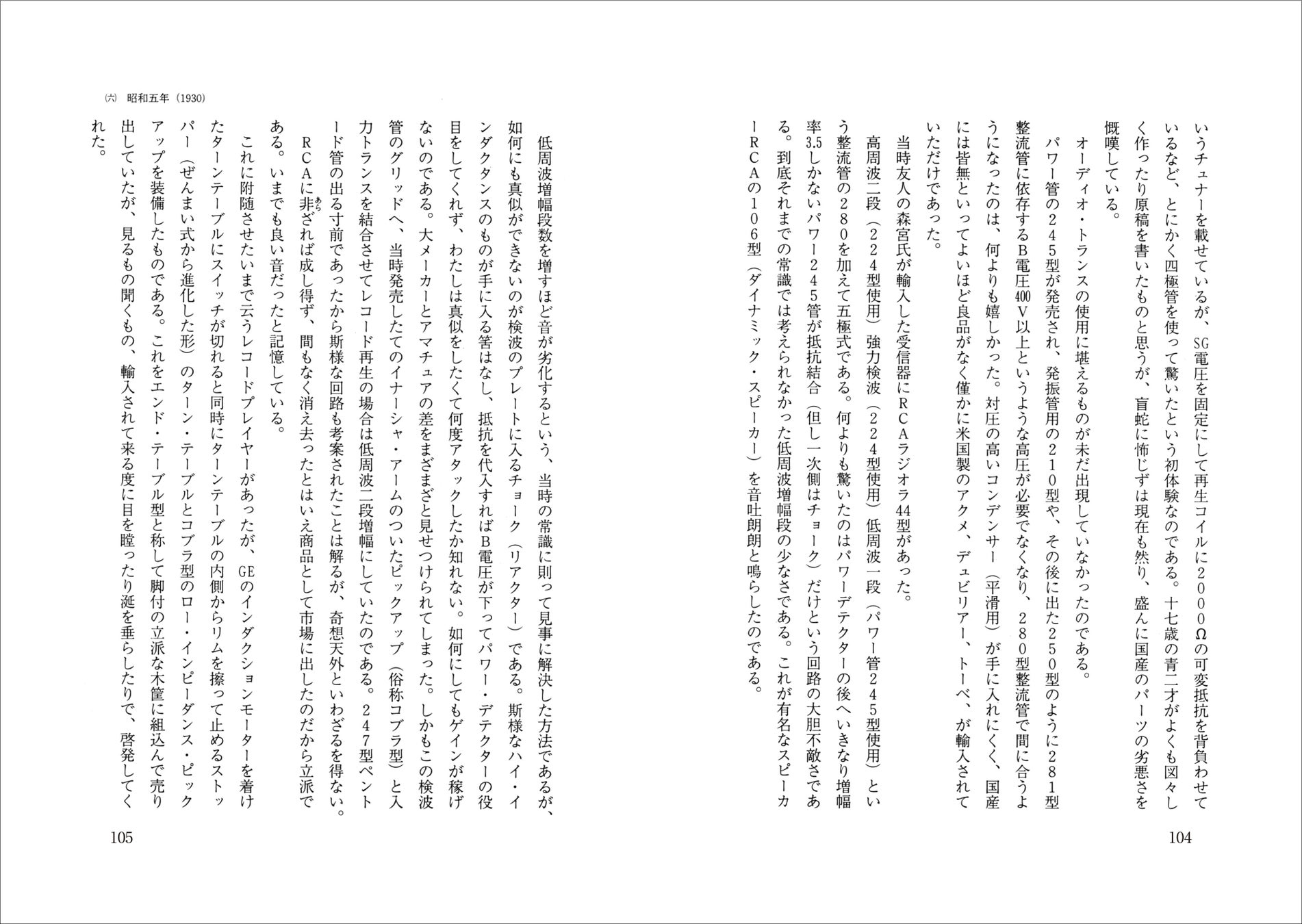 『真空管アンプと喜多さんの 音響道中膝栗毛』では、少年時代にラジオを製作してから著者が生きた60年間の中で、その時代に