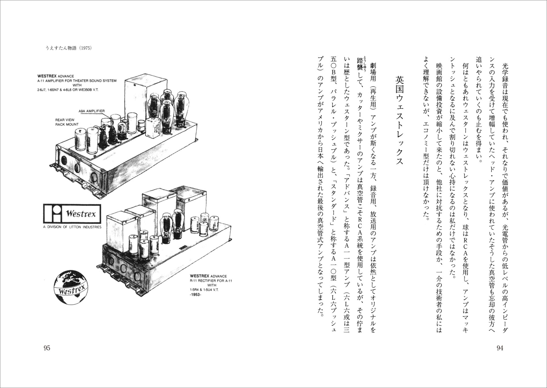■うえすたん物語(一九七五) 口上/落語「酢豆腐」と「寝床」/高貴薬/落語「太鼓腹」/邦楽座/旧形を追放したシネマスコープ/磁気録音に伴う小型化/英国ウエストレックス/磁気録音四トラック時代/地方館の名機/兵器なみのプロ用装置/映画用音響装置の分布と価値/当直/録音(一)フィルム/録音(二)ディスク/言訳