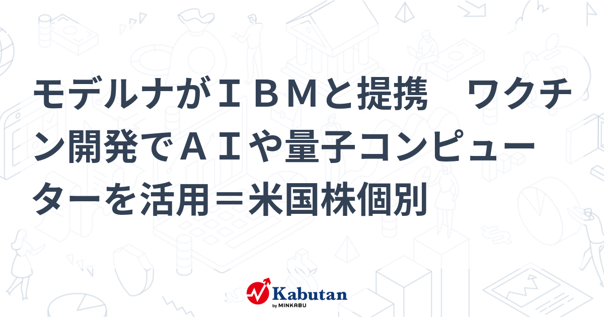 からの記事と詳細 ( モデルナがIBMと提携 ワクチン開発でAIや量子コンピューターを活用=米国株個別 | 個別株 - 株探ニュース - 株探ニュース )