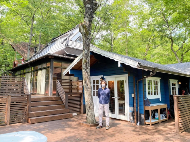 ソラやどは別荘地の一角にあり、昨年7月にオープンした。吉川さんは庭や外構の設計施工業・庭彩(にわいろ)(同県姫路市)の代表で、キャンプが趣味。自身の経験や本業を生かして、古民家とログハウスを改装し、宍粟産の木材を使ったウッドデッキを周囲に巡らせた。12人がゆったり泊まれる広さを備え、清掃担当として地元住民5人が働いている。