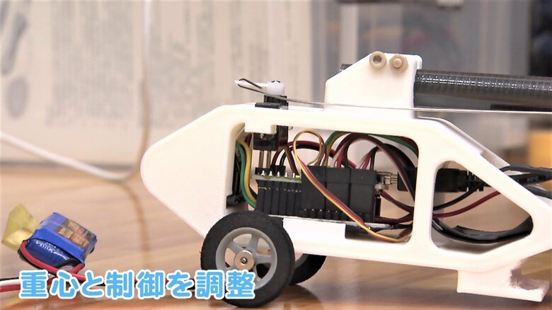 重心の位置を変えるとともに、機体を制御するマイクロコンピューターも調整。富田さんの腕の見せ所だ。