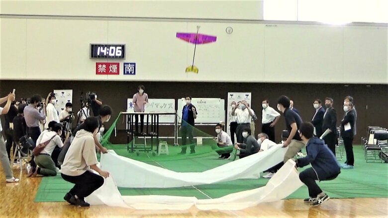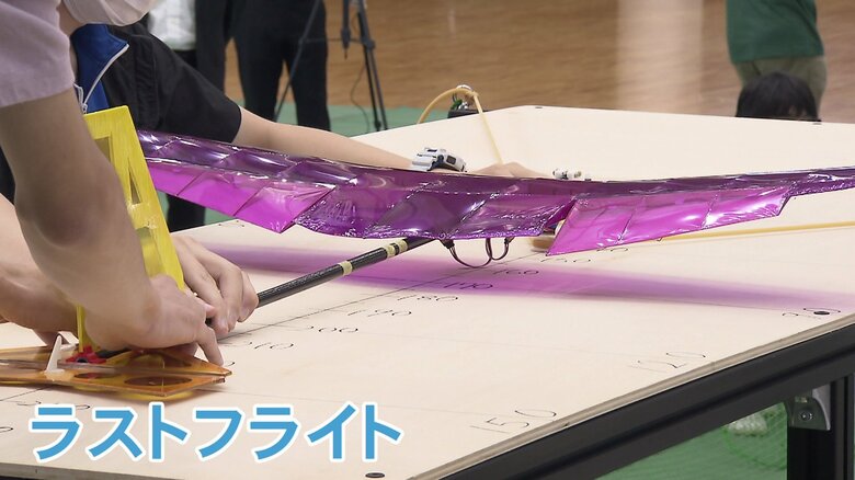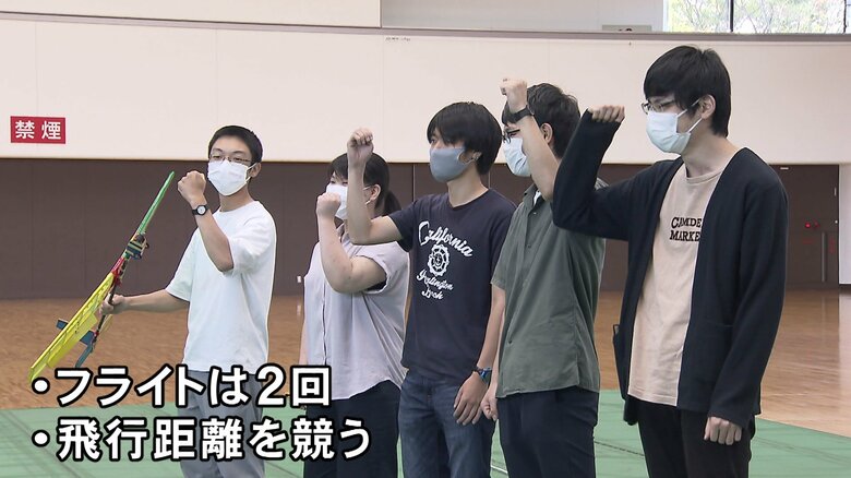 9月29日、「岐阜メモリアルセンター」でいよいよ本番。大会には、岐阜大学と名古屋大学から選抜された5チームが参加。2回のフライトでどのチームが一番遠くに飛ばせるかを競う。