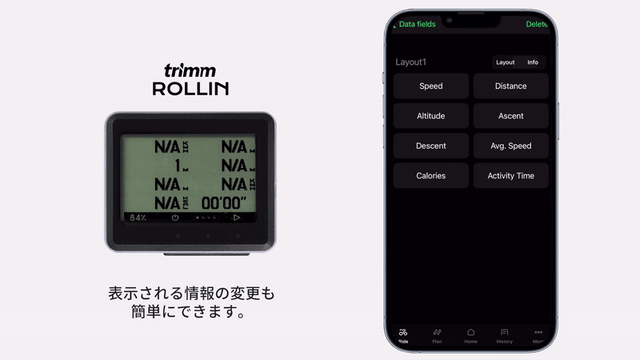 簡単操作で初めてのサイクルコンピューターにぴったりのtrimm ROLLIN!