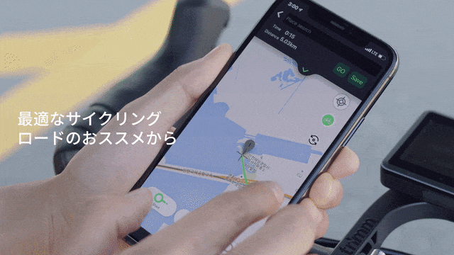 自転車の走行距離や時間、カロリー消費量の計測とGPS搭載による自転車専用ナビゲーション(経路再探索・音声案内)等を提供する『サイクルコンピューター』。