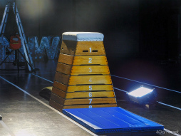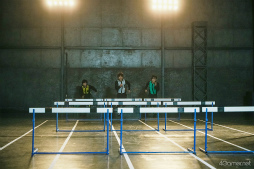 MVではさまざまな競技を撮影したのだが,筆者がまずオススメしたい種目が“跳び箱”だ。大人になるとなかなか飛ぶ機会がないだけに,作戦をちゃんと遂行するため,幹部たちは手を着く位置やロイター板の感触などをしっかり確認していた。さすがである。